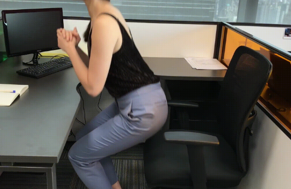 在椅子前采站姿,双脚张开与肩同宽,膝盖和脚尖呈一直线,双手交握放置胸前,保持核心稳定、脊椎延伸。吸气,臀部慢慢向后坐,采深蹲动作,屁股尽量靠近椅子但不坐下,术伟四研策判吐气时再站起来,重复动作。