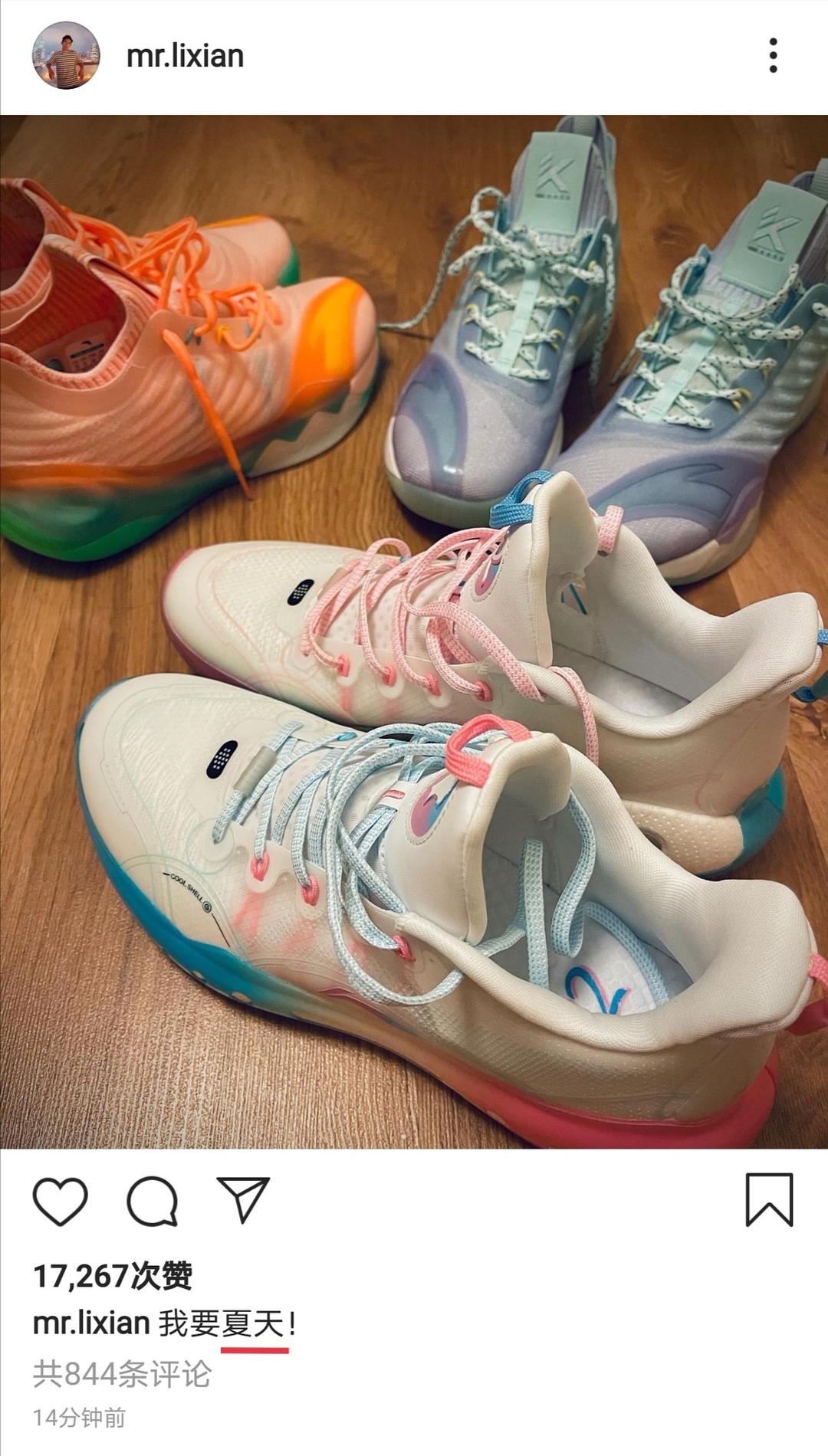 两人甜的起源,来自于李现在社交账号上晒出的球鞋,并配文“我要夏天!”普通人若要表达对夏天的喜爱之情,大多数会用“我爱夏天”,而李现则是写的“要”字,一下子就引起了网友的好奇心。