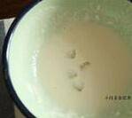 3、蘸上面糊,丟入6成热的油锅中,面糊定型即可捞出。