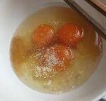 2、碗里放入3个鸡蛋,加点料酒、盐和鸡粉调匀。