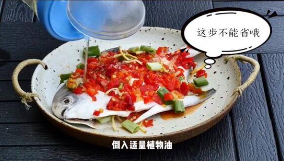 6、放入蒸箱中,选择蒸鱼模式,85度蒸12分钟,出锅后撒上蒜末葱花,浇上热油即可。