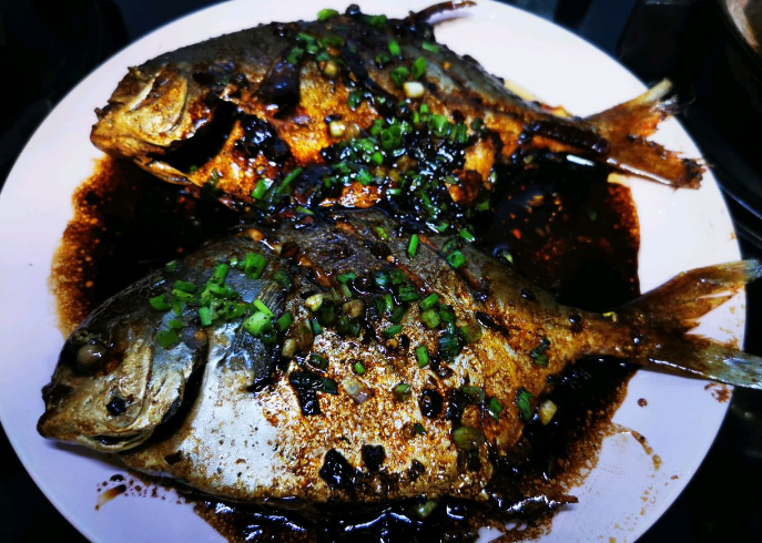1、准备食材:鲳鳊鱼2条、葱姜适量、油盐适量、红烧酱油适量、料酒适量、糖适量、黑胡椒粉适量。