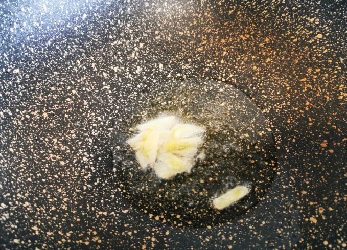 3、锅里放油,加入姜片,下鱼两面煸一下,动作要轻缓,再加料,炖3-5分钟即可。