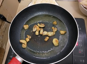 2、热油锅,只放一点油,肥肉和部分肥皮先炸出油。