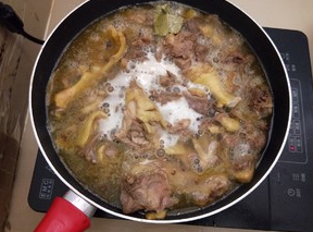 5、加入香叶,倒入500克啤酒,没过鸭肉。