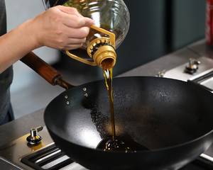 3、锅里热油,将蒜末丢进去爆香。