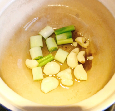 煎好盛盘备用,砂锅放油放葱姜蒜。
