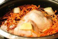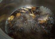 3、将鸡腿与水一同置入锅中,以大火煮至沸腾后,改以小火煮15分钟,再加入虎耳草及米酒,续煮10分钟即可。