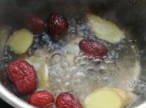 3、将虎耳草放入1500ml的水,加入姜块、大枣,大火煮滚。