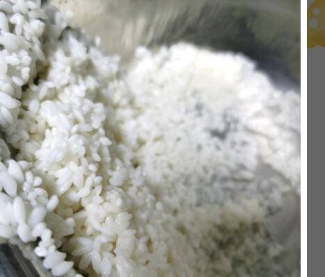 2、前一晚把米洗好、泡水。水位高于米一厘米左右,放入冰箱。