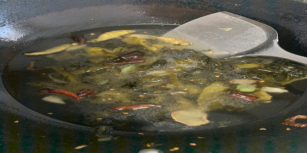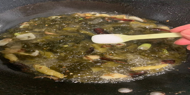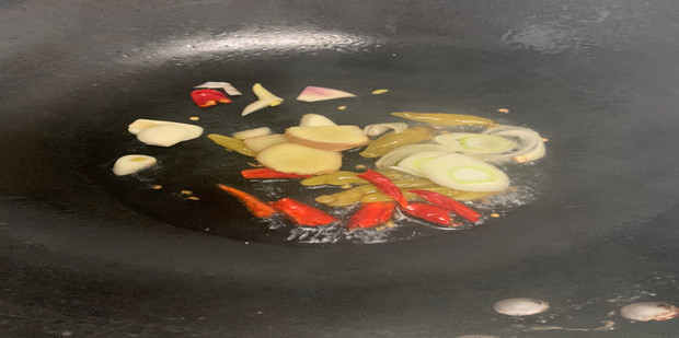 4:锅中油烧热后下葱姜蒜辣椒剁椒爆香