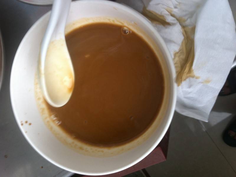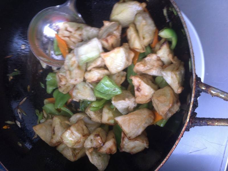 3、茄子沥油控干,将生抽、醋、糖、水、盐、味精、水淀粉调好汁备用。