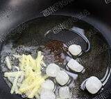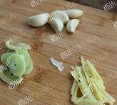 5、炒锅,适量油,爆香一下姜丝,小火,加入冰糖、水,炒出糖色。