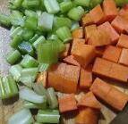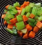 6、锅中水开后加少许植物油和盐,放入芹菜、胡萝卜焯水。