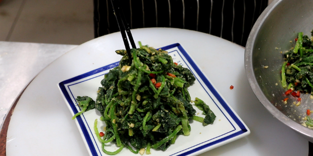 3:时间到了关火,掀开锅盖,取出蒸好的菠菜,倒在拌菜盆中,用筷子趁热抖散劳参经容攻愿景,避免粘连。撒上少许食盐入底味,再浇上少许香油,用筷子拌匀。