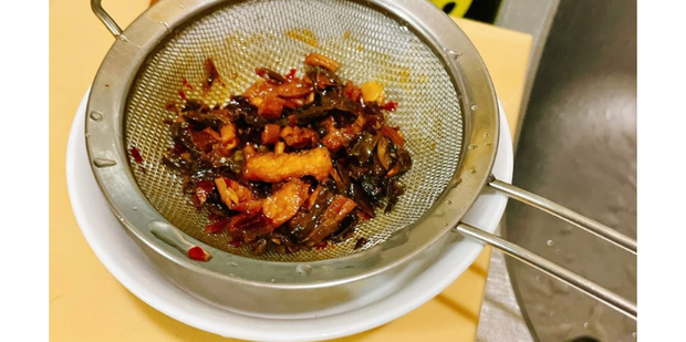 4:两勺外婆菜冲一下水冲淡一下咸味。