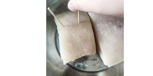 3:放凉,用牙签在皮上戳几个洞方便油往外冒。