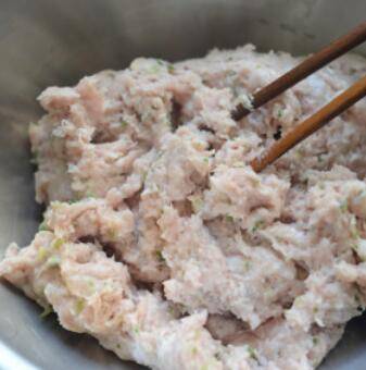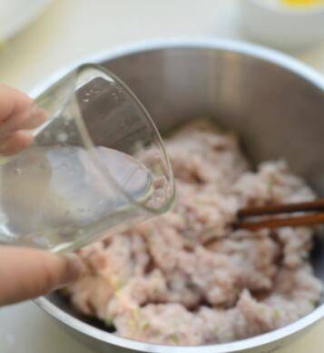 5、打好水的肉泥,加入胡椒粉、生抽、盐、鸡精、五香粉、搅拌均匀,静待入味。