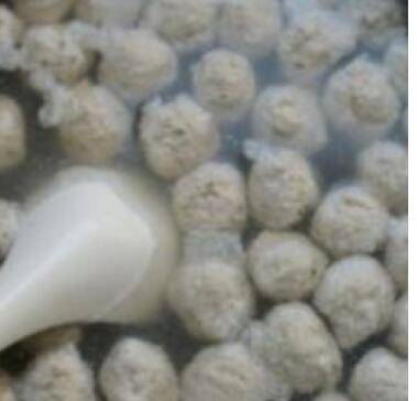6、锅中放水,开火,用虎口挤出丸子后下锅,煮至漂浮。