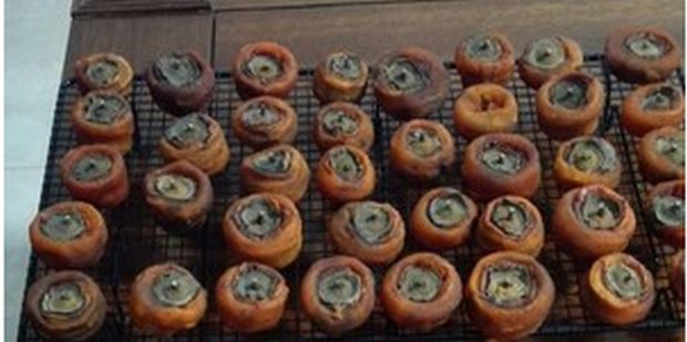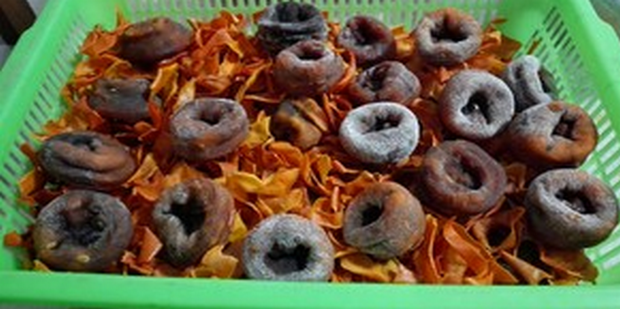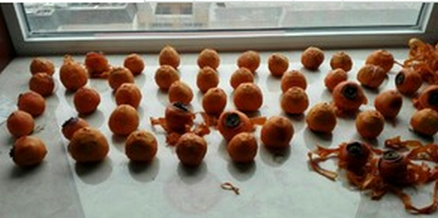 5:慢慢的白霜就出来了,柿饼就制作成了。