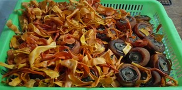 2:削好皮后,在开水里滚一下,放在太阳充足的地方开始晒。削下来的皮不要扔,际夫皮传树吸杂屋企历一起晒。