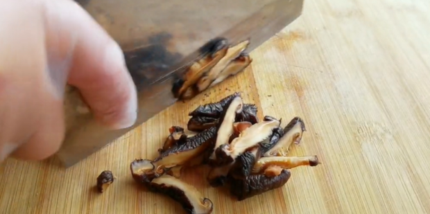 11:将泡好的香菇切成条。