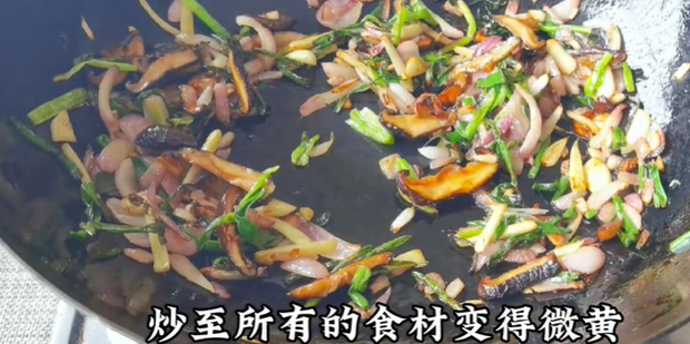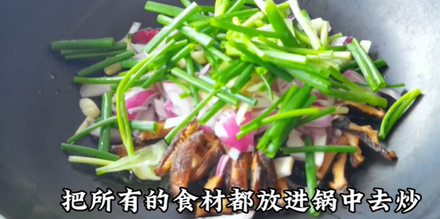 13:把所有的食材都放入锅中去翻炒。