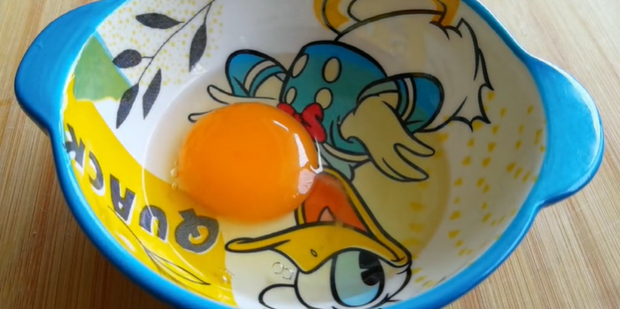 12:在碗中打入一个鸡蛋。