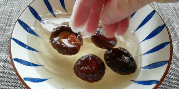 1:首先先准备一些香菇,在水中进行浸泡。