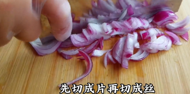 4:把洋出始肥论葱先切片再切丝。