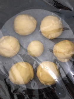 6:把面团分成7个小球,放入空气炸锅,底下铺好油纸,上面盖好保鲜膜继续醒发