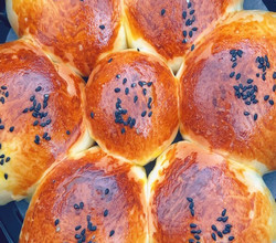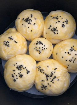 7:二次醒发好,涮蛋黄液,撒上黑芝麻