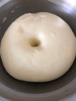 5:将揉好的面团盖保鲜膜发至两倍大,用手指戳洞,不回缩不塌陷,就可以了。这个过程大概需要40 分钟,如果放到朝汉垂管九包类值温度高的地方,时间会短些