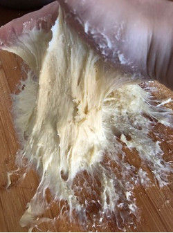 4:艰难的30分钟终于熬过来自去了,面不粘手了,继续揉,用力揉直到揉出手套膜