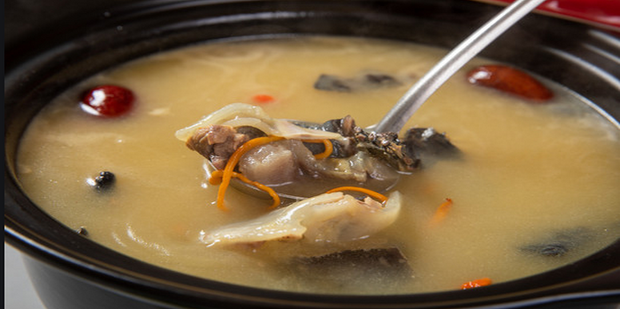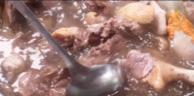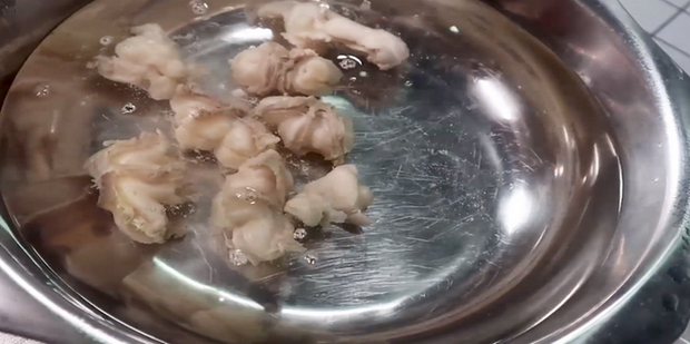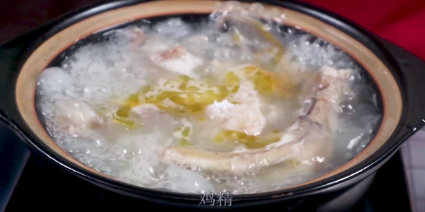 2:将牛鞭、狗清水,煮沸,撇去浮沫,投入母鸡肉和花椒、老生姜(切大片)、葱(切段)、绍酒,先用武火煮沸,再30分钟翻动一次,以防