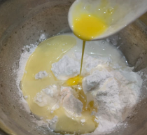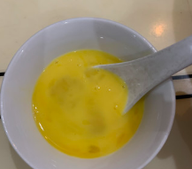 区主穿收1:鸡蛋磕入碗中搅拌均匀成蛋液备用。