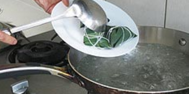 7:用冷水将炒锅放在高温下直到沸腾。放入粽子,盖上锅盖煮1-2小时。较大的填。烹调过程中,将粽可能需要多次加入热水。为了您的方便,请准备一个装有热水的水壶。