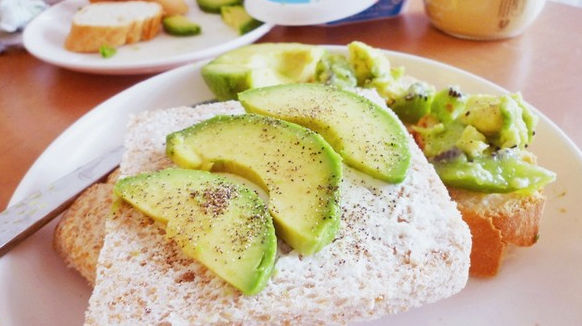 3:涂在面包片上。这是很简单的一种吃法,牛油果切开后,用小勺舀起,当果酱,涂抹均匀,再加上草莓酱或蜂蜜,口感就相当好了。