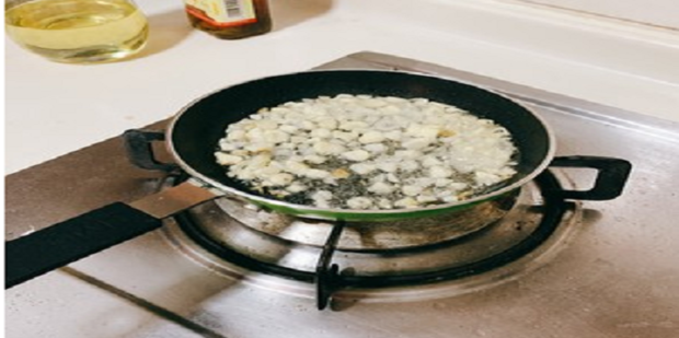 4:把葱丝、姜片、部分蒜粒放在龙虾上,去煮调味料。
