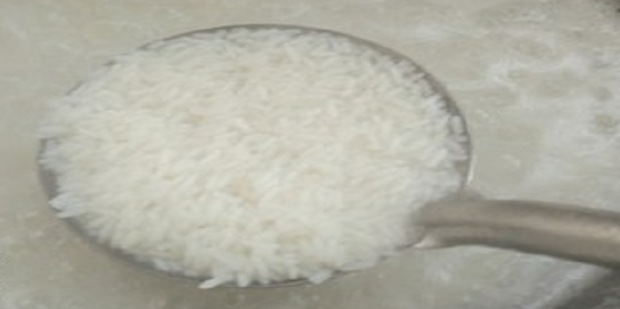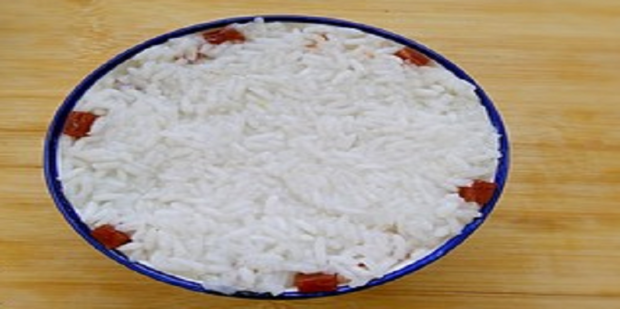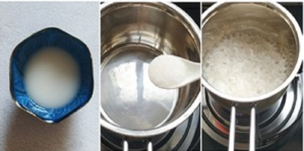 9:把氽过水的糯米倒在碗里,表面用勺子压平。