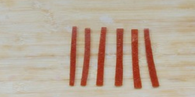 5:将果丹皮切成条状备用,长度根据自己碗的大小调整。