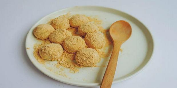 2 | 汤圆煮好后捞出在益来控水放在黄豆粉里滚一滚,开吃!假装是驴打滚。