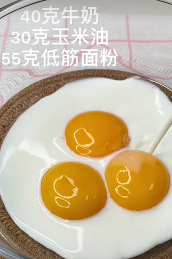 2:蛋黄中加入40克牛奶、30可玉米粉、55克低筋面粉。