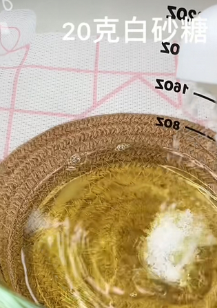 完标针字4:蛋清中加入20可白砂糖干条使,开始搅拌。