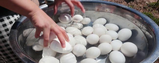 40个左右鹅蛋大概需要750克盐腌制。在腌制鹅蛋之前,需要将所有鹅蛋清洗一遍,因为鹅蛋的表面有一层保护膜,如果不进行清洗的话,就会导致鹅蛋无法入味,所以清洗后能使鹅蛋腌制的速度加快,并且口感更好。