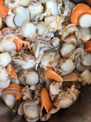 5、另起油锅爆香辅料,放海鲜酱油调味,放入贝肉翻炒,放少许盐出锅即可。