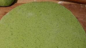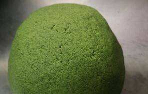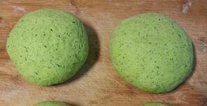 2、米蒿洗净,用搅拌机打碎和成面团。