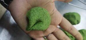 4、分成剂子,做成花瓣状米粿。