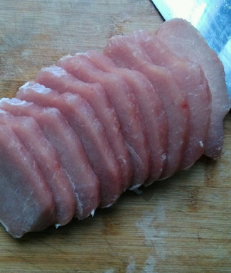 7、不粘锅加热,电磁炉火锅档800-1000瓦的火。倒入葵花子油,油温加热到六成,把肉片放入锅里,开始煎。