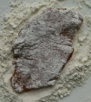 5、腌制2个小时后,将姜丝挑出,再放入干面粉中裹一层。